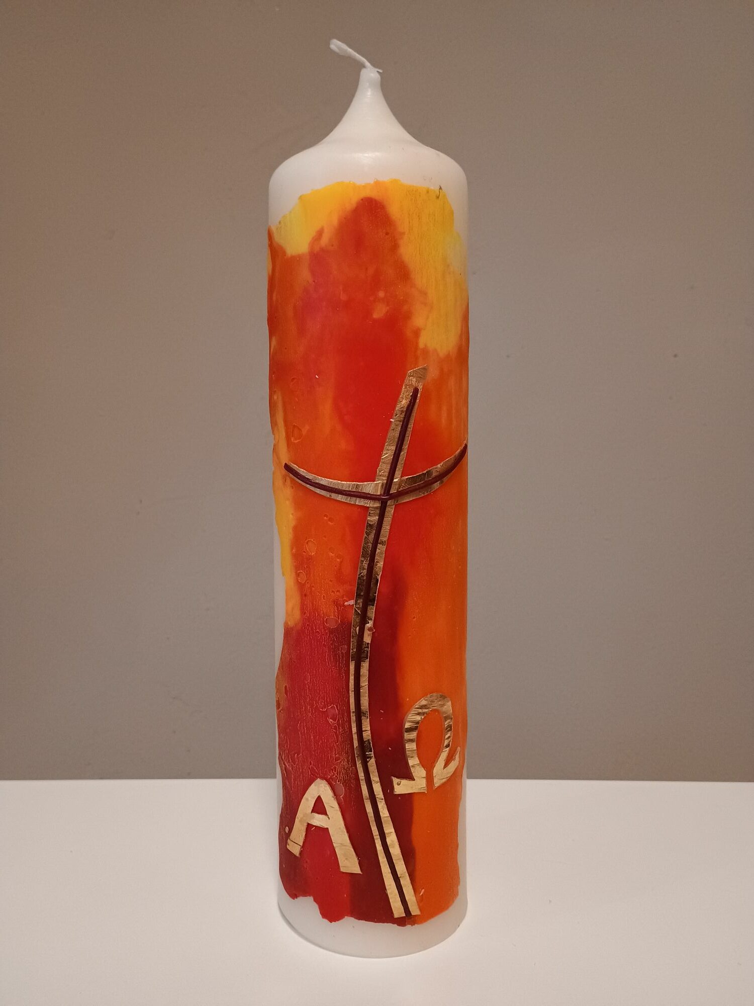 Dieses Unikat ist in liebevoller Handarbeit nach eigenem künstlerischem Entwurf in unserer Kerzenwerkstatt entstanden.
