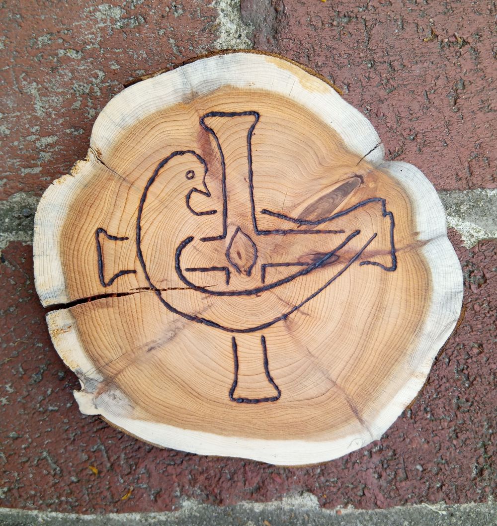 Lärchenholz aus dem Klostergarten, ca. 2 cm dick und ca. 18 cm Durchmesser