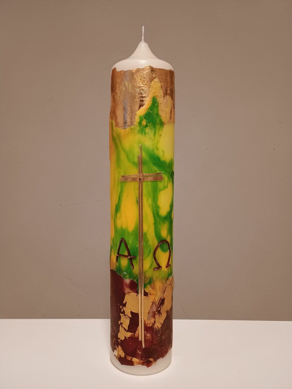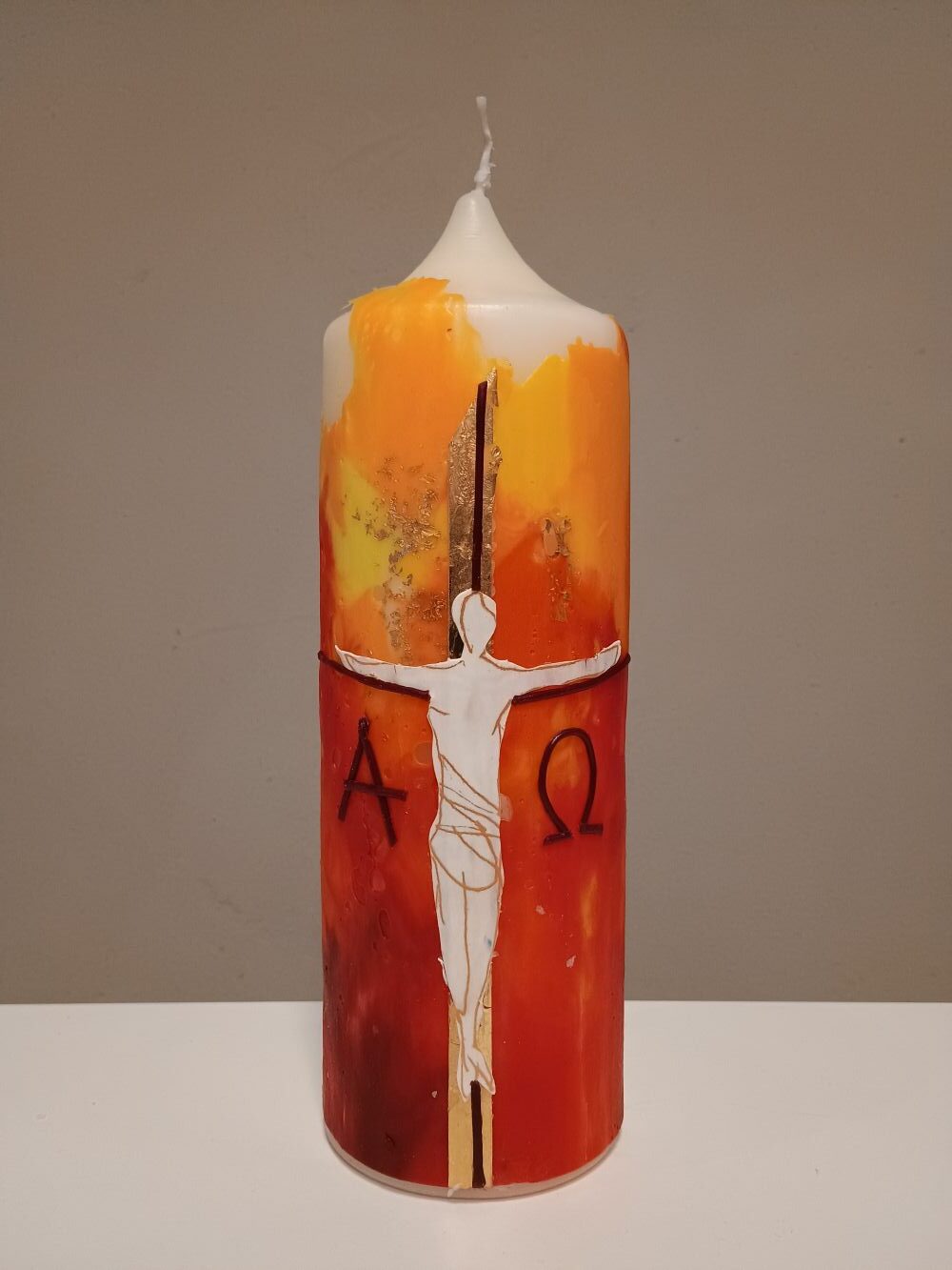 Dieses Unikat ist in liebevoller Handarbeit nach eigenem künstlerischem Entwurf in unserer Kerzenwerkstatt entstanden.