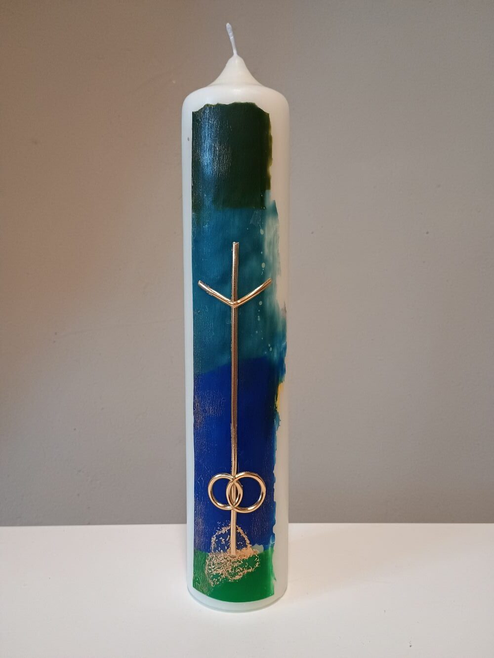 Dieses Unikat ist in liebevoller Handarbeit nach eigenem künstlerischem Entwurf in unserer Kerzenwerkstatt entstanden.