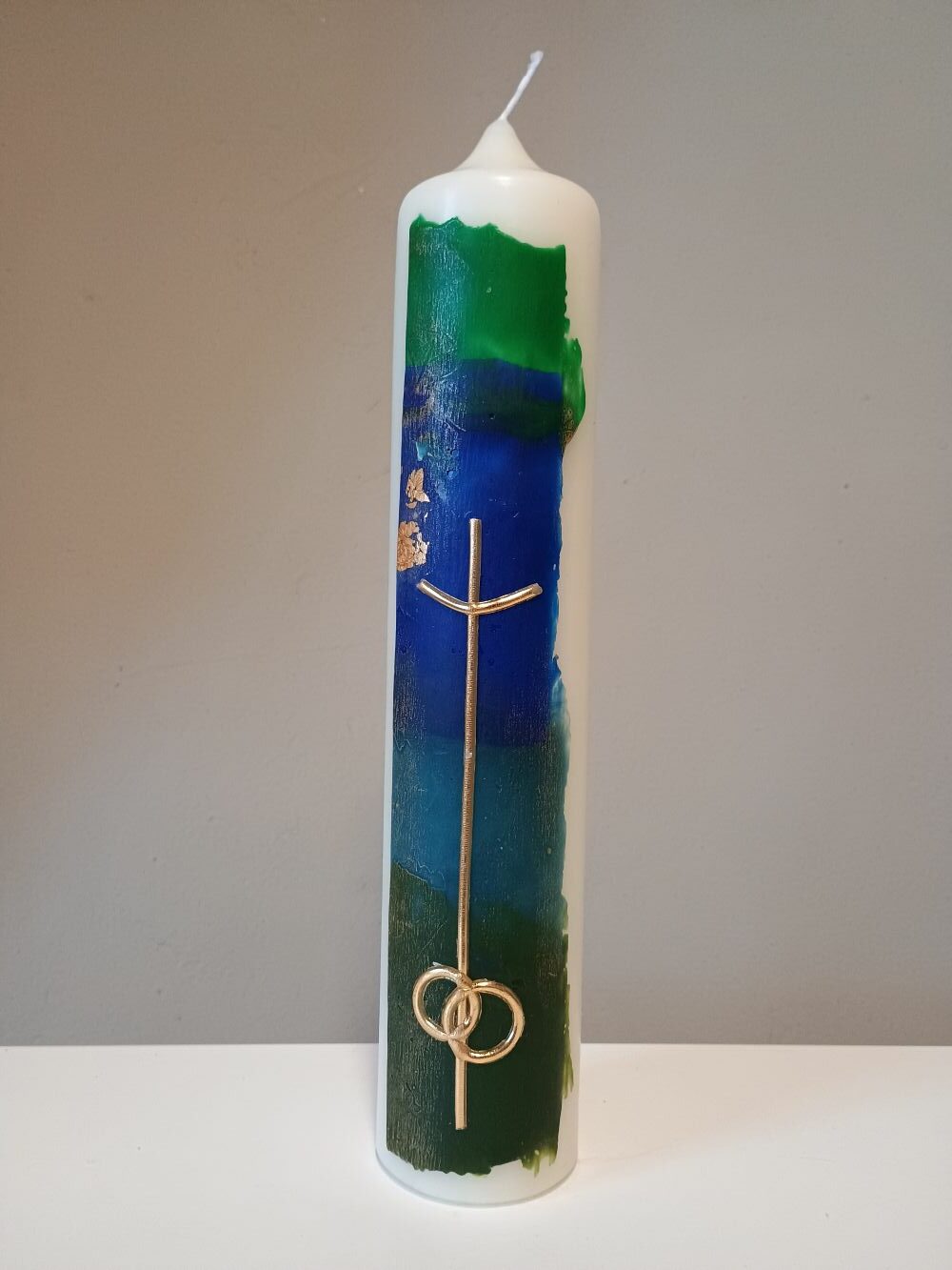 Dieses Unikat ist in liebevoller Handarbeit nach eigenem künstlerischem Entwurf in unserer Kerzenwerkstatt entstanden.