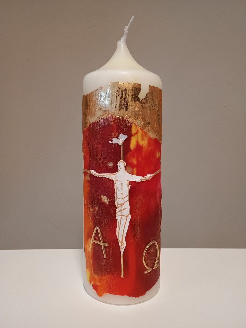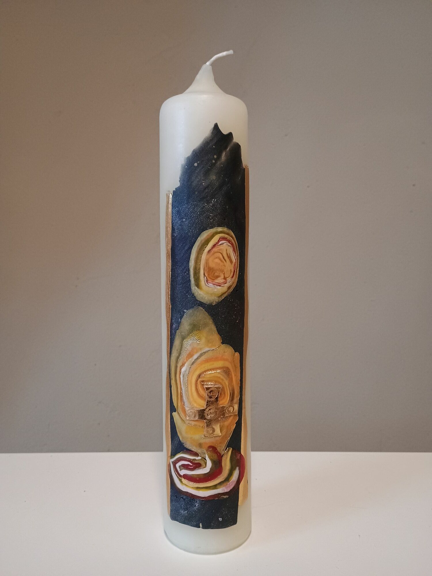 Dieses Unikat ist in liebevoller Handarbeit nach eigenem künstlerischem Entwurf in unserer Kerzenwerkstatt entstanden.