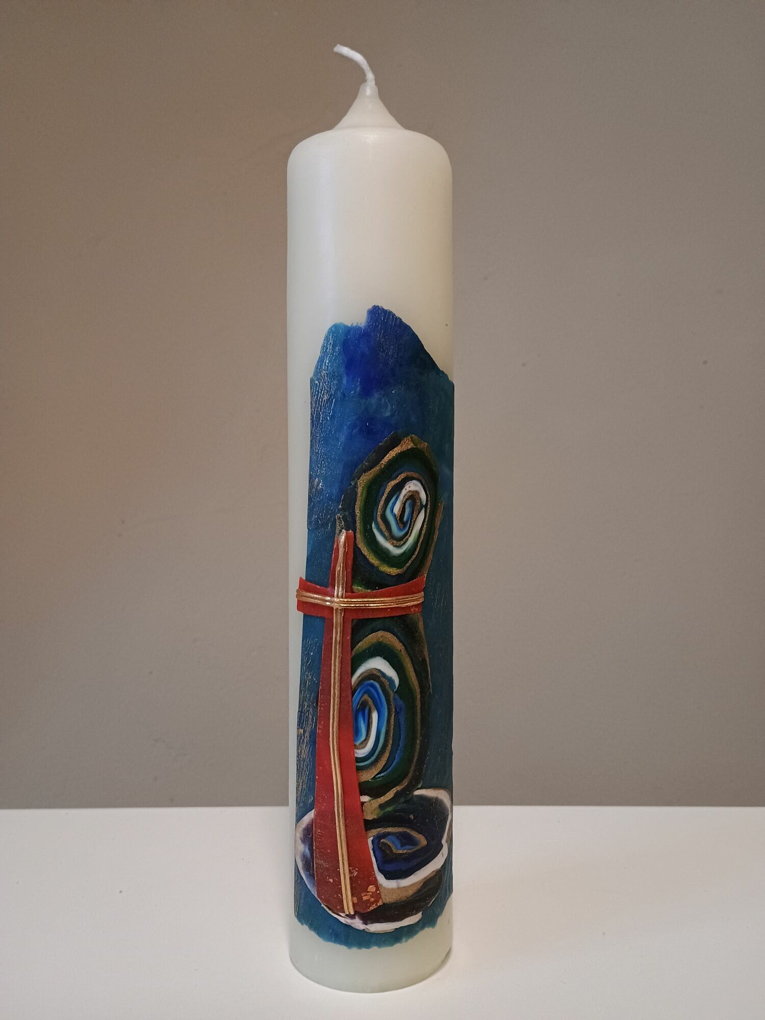 Dieses Unikat ist in liebevoller Handarbeit nach eigenem künstlerischem Entwurf in unserer Kerzenwerkstatt entstanden.