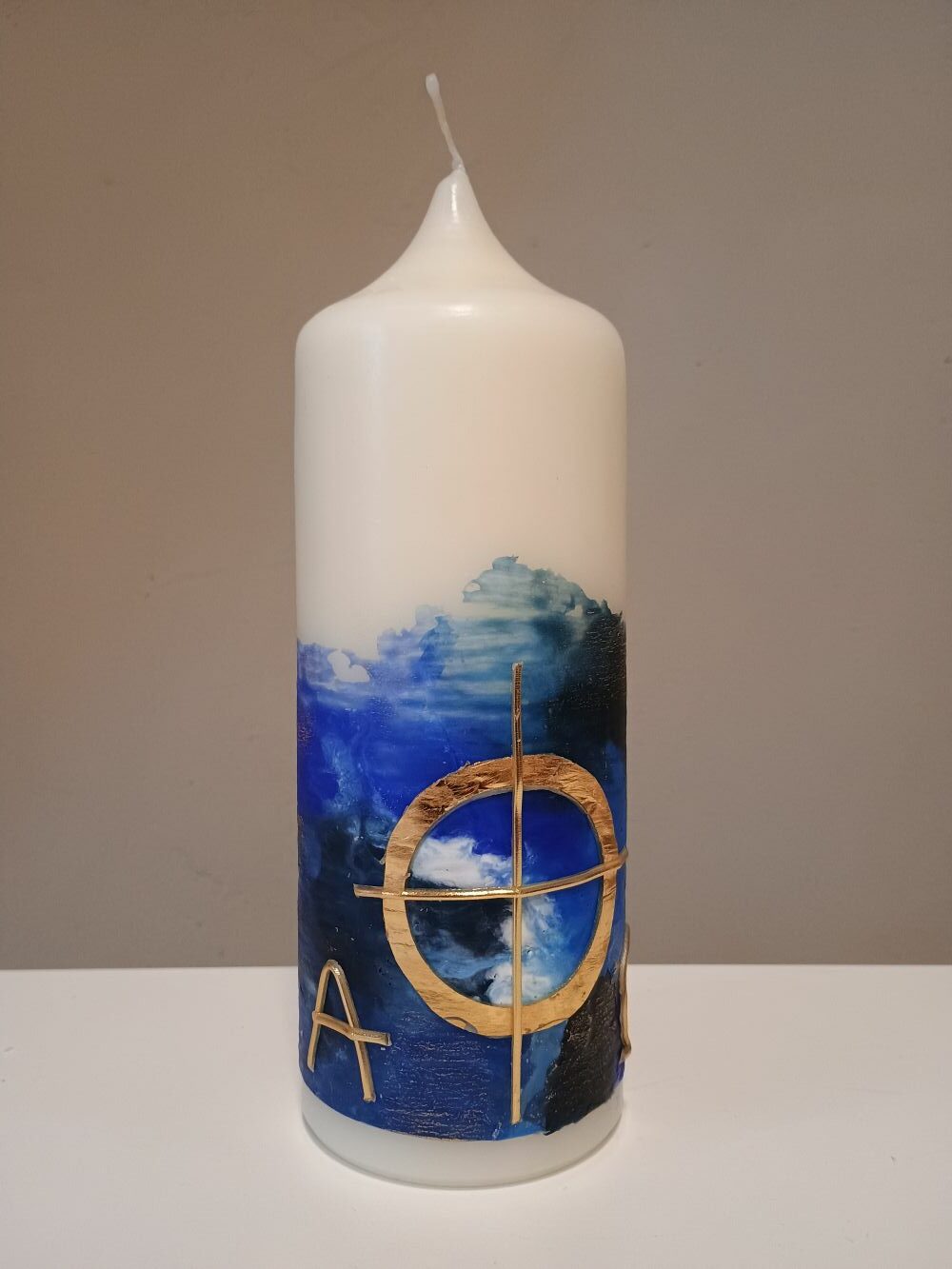 Dieses Unikat ist in liebevoller Handarbeit nach eigenem künstlerischem Entwurf in unserer Kerzenwerkstatt entstanden.