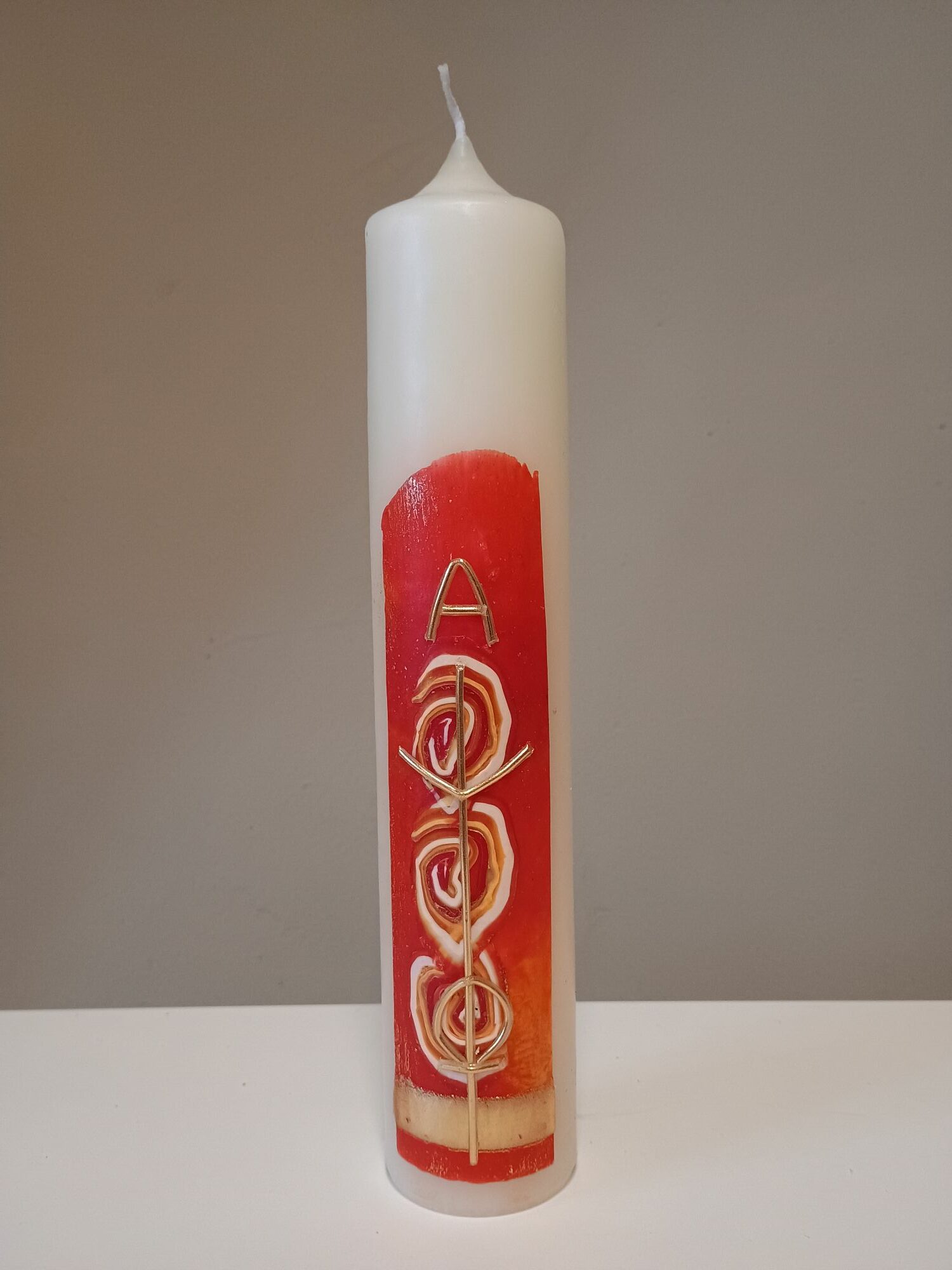 Dieses Unikat ist in liebevoller Handarbeit nach eigenem künstlerischem Entwurf in unserer Kerzenwerkstatt entstanden.