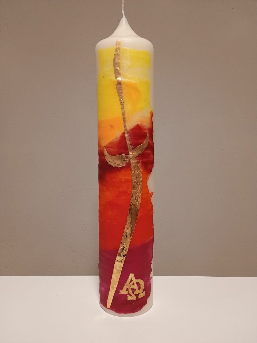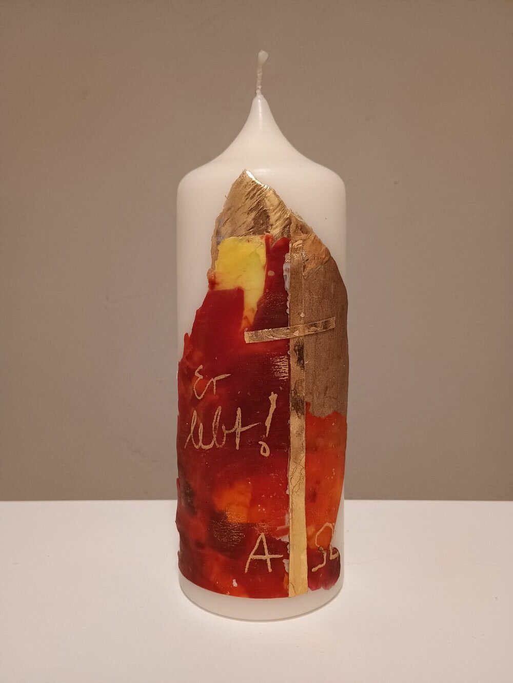 Dieses Unikat ist in liebevoller Handarbeit nach eigenem künstlerischem Entwurf in unserer Kerzenwerkstatt entstanden.