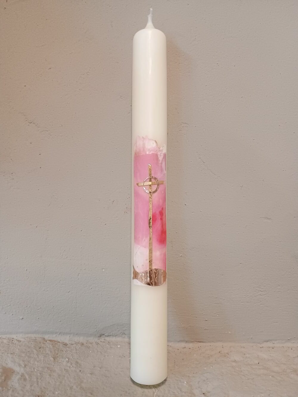 Dieses Taufkerzen-Unikat ist in liebevoller Handarbeit in unserer Kerzenwerkstatt entstanden.