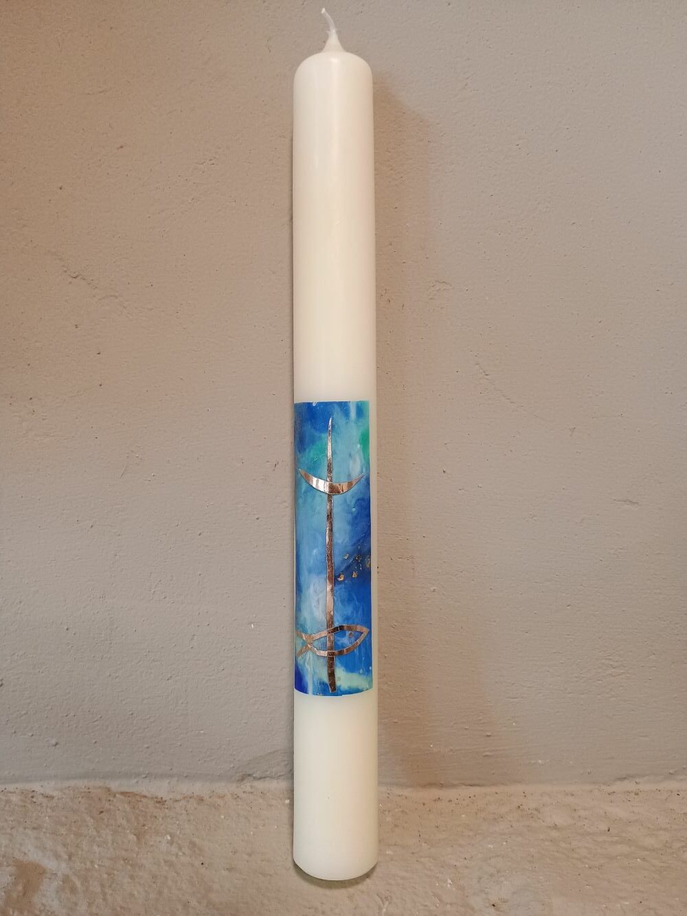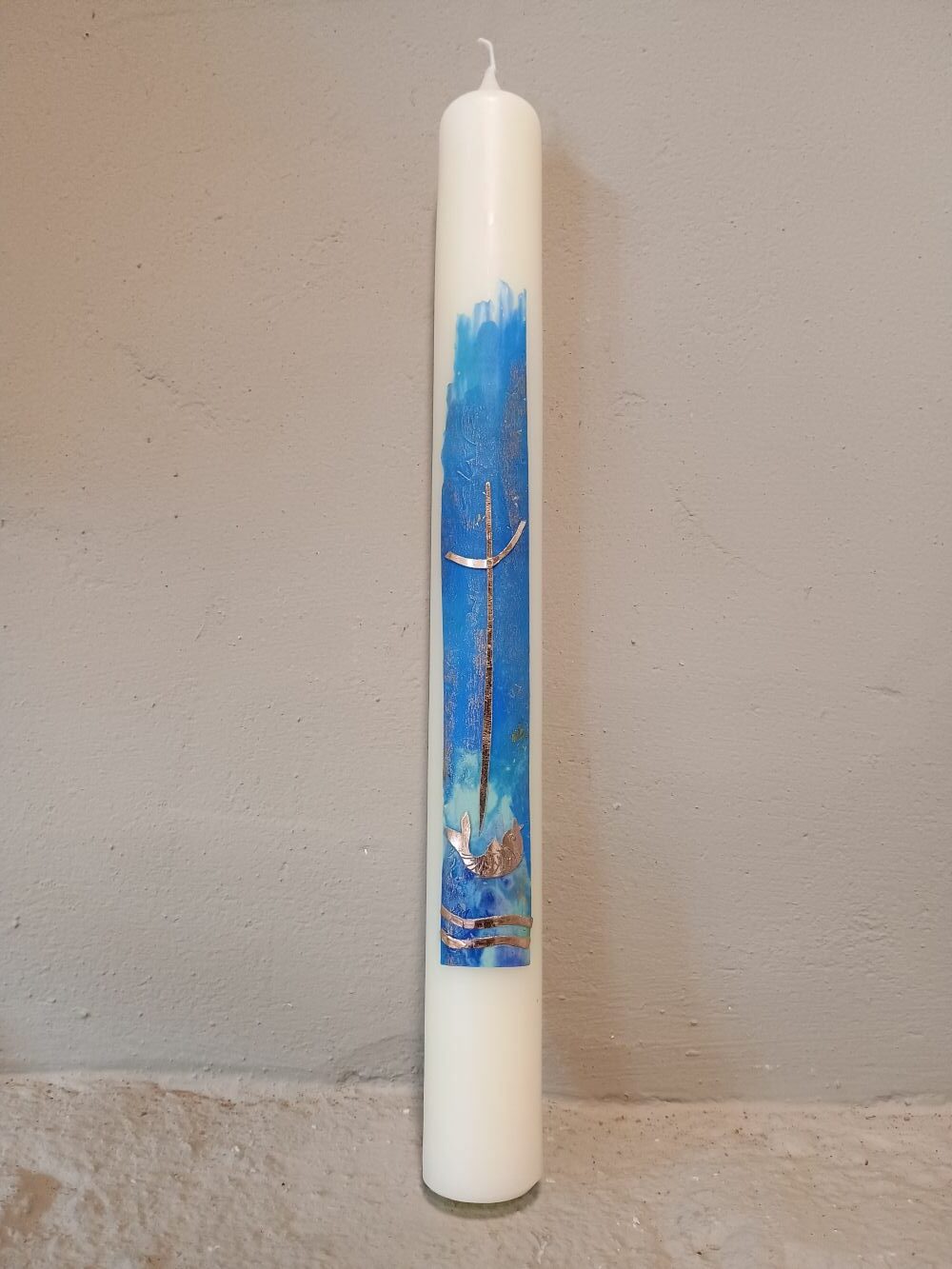 Dieses Taufkerzen-Unikat ist in liebevoller Handarbeit in unserer Kerzenwerkstatt entstanden.