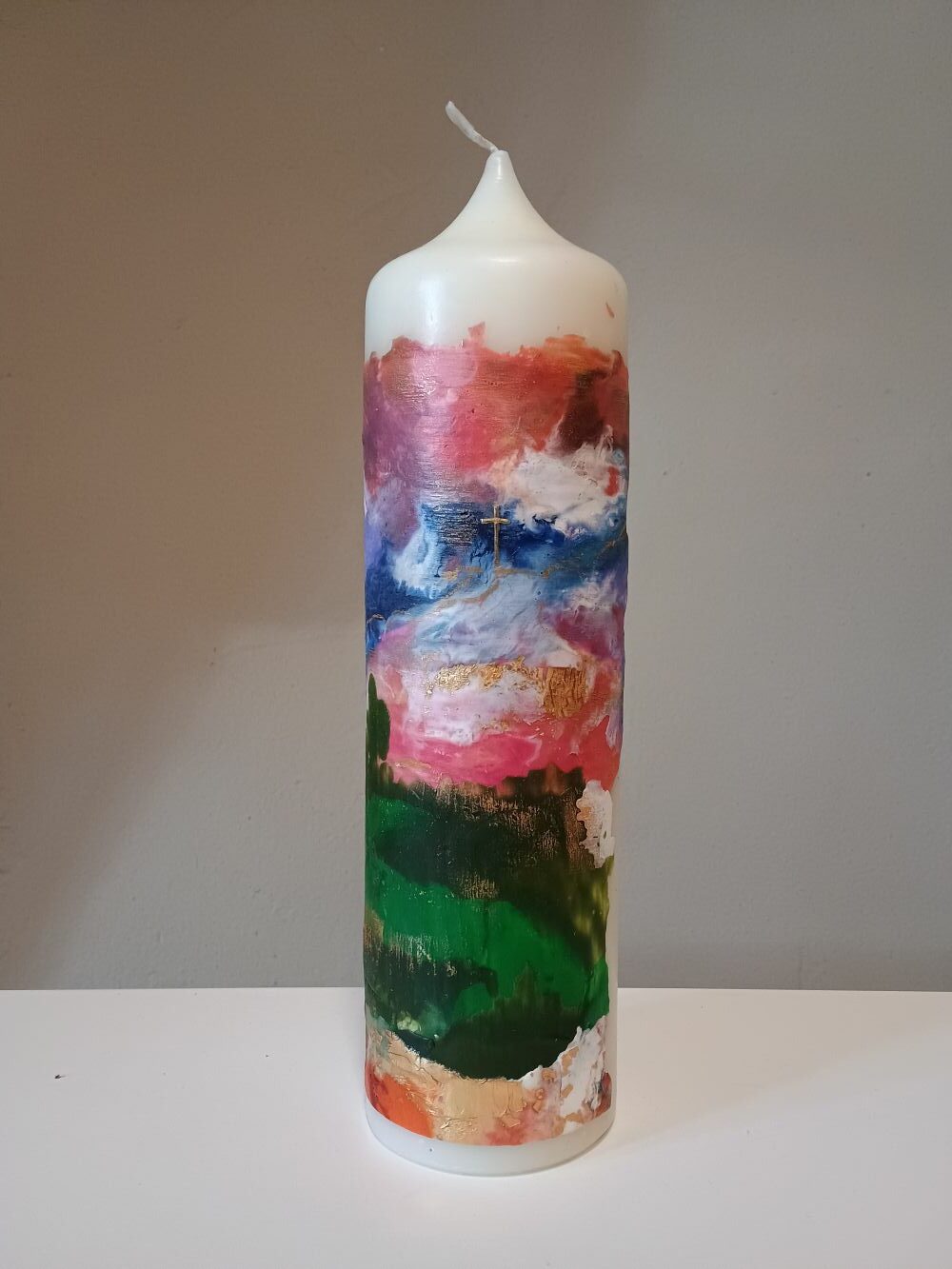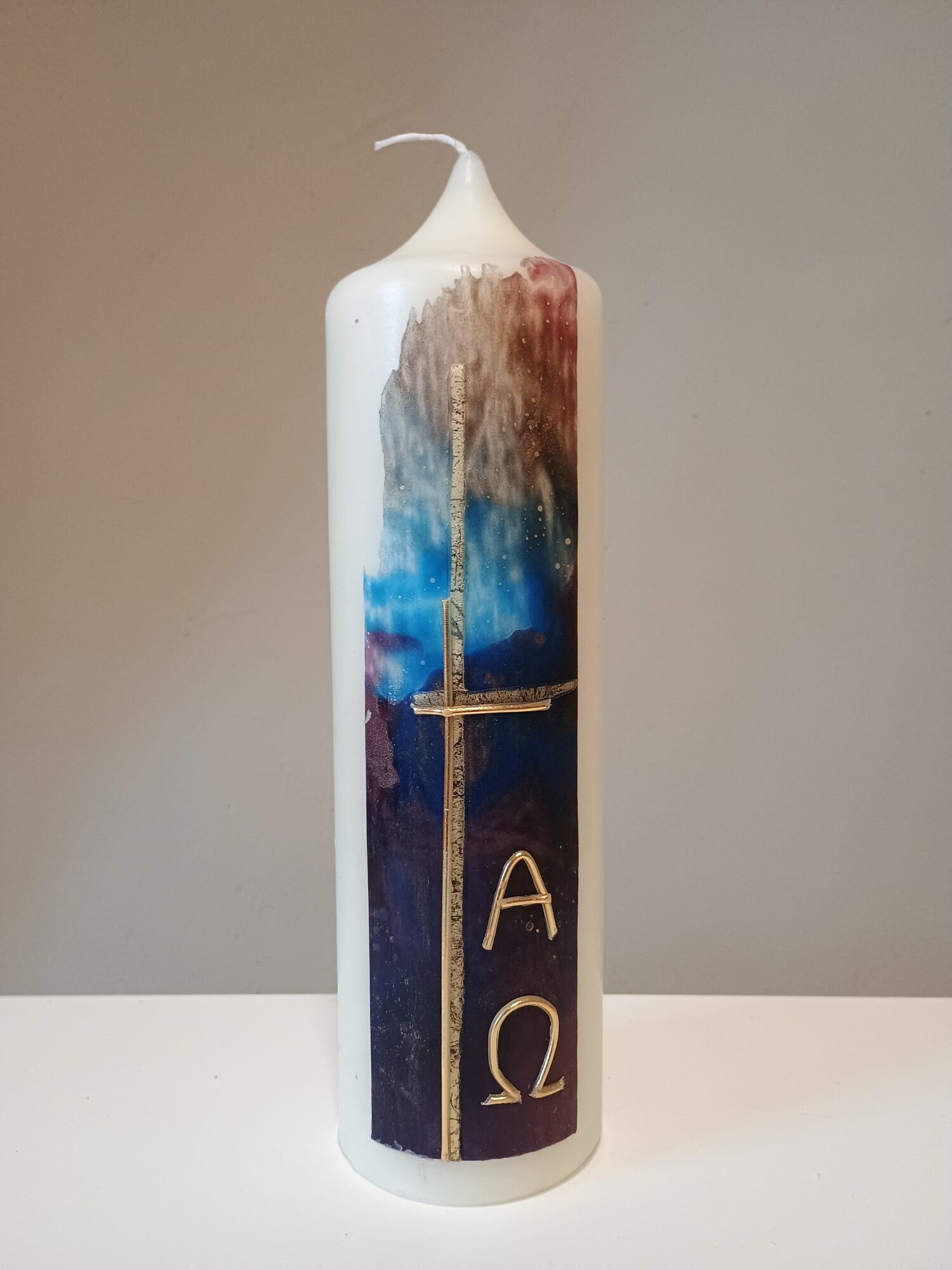 Dieses Unikat ist in liebevoller Handarbeit nach eigenem künstlerischem Entwurf in unserer Kerzenwerkstatt entstanden.